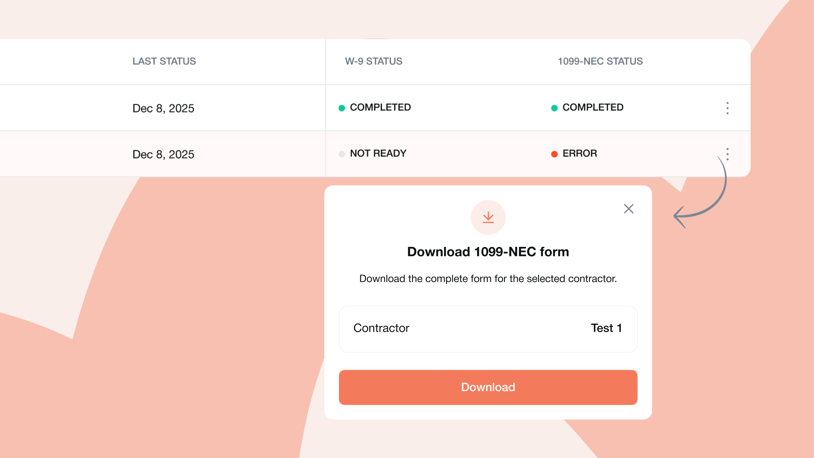 Once submitted, each contractor’s W9 form is securely stored and available to download at any time, not just during tax season. You’ll always have the information you need right at your fingertips.