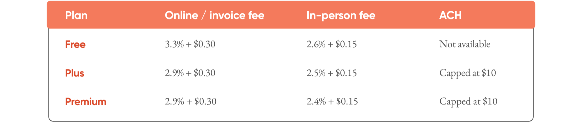 6. ACH cap on paid plans. For very large single transactions, Square's ACH fee cap of $10 on Plus and Premium plans is genuinely competitive. A $25,000 venue deposit processed via Square ACH on a Plus plan costs just $10.