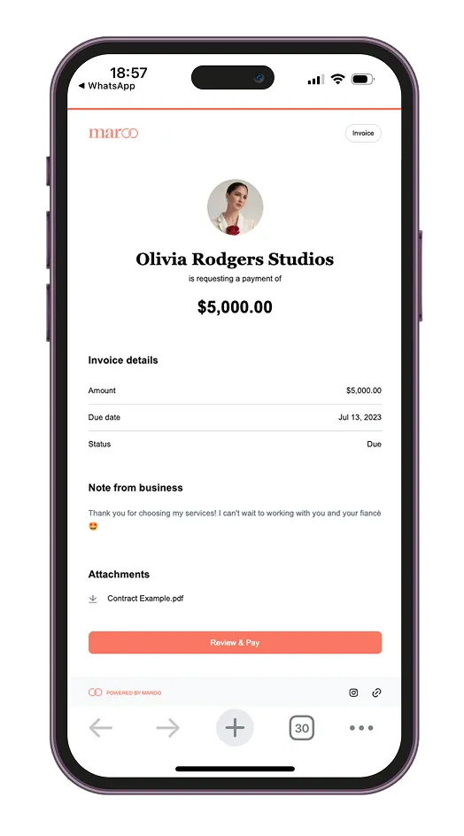 Bring all your clients, projects, and payments together in one simple platform. Maroo helps you manage invoices, contracts, and communication so you can focus on capturing unforgettable stories.